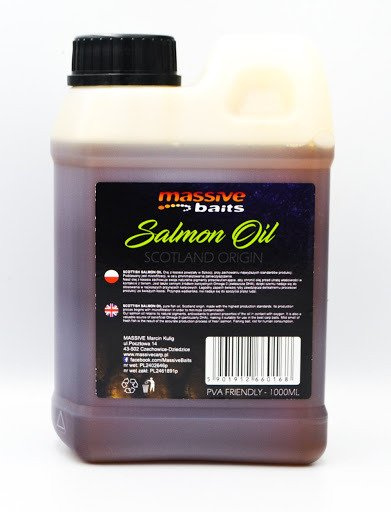 SCOTTISH SALMON OIL Olej z łososia powstały w Szkocji, przy zachowaniu najwyższych standardów produkcji. Poddawany jest mikrofiltracji, w celu zminimalizowania zanieczyszczenia. Nasz olej z łososia zachowuje swoje naturalne pigmenty przeciwutleniające, aby chronić olej przed utratą właściwości w kontakcie z tlenem. Jest także cennym źródłem korzystnych Omega-3 (zwłaszcza DHA), dzięki czemu nadaje się do stosowania w najlepszych przynętach karpiowych. Łagodny zapach świeżej ryby zawdzięcza delikatnemu procesowi produkcji ze świeżych łososi