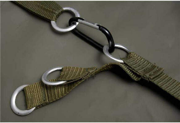 Posiada system ustawiania różnych szerokości namiotu oraz system mocowania podłoża za pomocą rzepów w połączeniu z dwoma metalowymi klipsami.