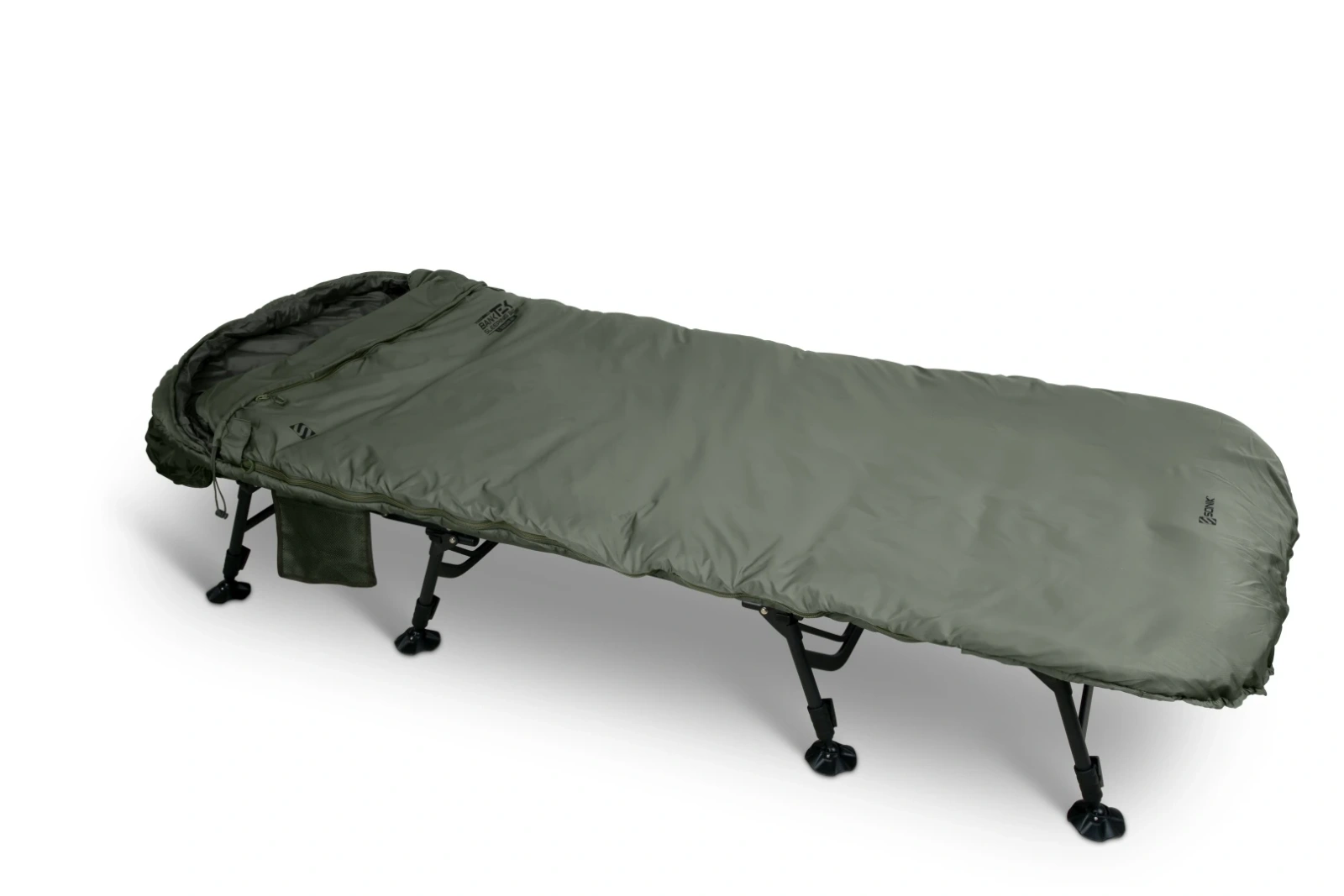 Śpiwór karpiowy Sonik Bank Tek 5 Season Wide - Szeroki śpiwór Bank-Tek 5-Season zapewnia maksymalną izolację przez cały rok i niezwykle skutecznie utrzymuje ciepło. Zaprojektowany specjalnie do szerokich łóżek, jest wykonany z wodoodpornego, wytrzymałego i oddychającego materiału ripstop 190T. Zastosowaliśmy wysokiej jakości materiały, aby zapewnić mu funkcjonalność przez wiele sezonów. Wysokiej jakości wypełnienie z włókien kanalikowych impregnowanych silikonem zachowuje swoją puszystość, zapewniając maksymalne utrzymanie ciepła. Nowa konstrukcja kaptura zapewnia maksymalną wszechstronność i pozwala na swobodne dopasowanie śpiwora do ciała, niezależnie od preferowanej pozycji do spania. Wierzchnia warstwa podszyta polarem zapewnia ciepło, a gładka, poliestrowa podszewka na spodzie ułatwia poruszanie się wewnątrz śpiwora. Z dodatkową, gładką poliestrową podszewką na karku, część zagłówka i część stóp posiadają ściągacze, które pozwalają na zwiększenie izolacji i wyeliminowanie zimnych punktów, zapewniając komfortowy sen. Ostatnim elementem jest szeroka, rozkładana moskitiera na głowę, która jest bardzo przydatna podczas spokojnych letnich nocy pod gwiazdami.