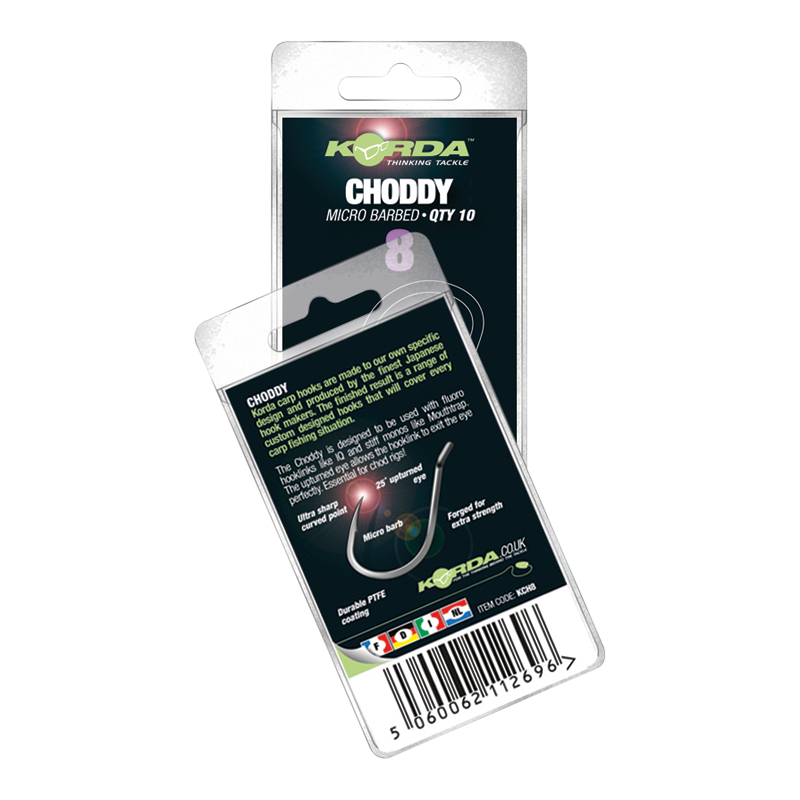 Haczyk ten został zaprojektowany głównie do użytku w przyponach typu chod oraz weszelkiego rodzaju sztywnymi materiałami, takim jak Mouth Trap. Jednak jego atrakcyjność nie kończy się na tym, jest to haczyk do zastosowania w połączeniu z przynętami typu pop-up, który może być używany w przyponach typu pop-up Darrell Peck's N-Trap, a także z przynętą tonącą na przyponie N-Trapa Toma Dove'a. Aby umożliwić wygięcie przyponu chod haczyk Choddy ma oczko odgięte na zewnątrz trzonka. Reszta jego kształtu opiera się na magicznym wzorcu haka Wide Gape. Choddy wykonany jest z grubszego drutu niż standardowy Wide Gape, co czyni go idealnym hakiem na największe karpie świata. Darrell Peck wylądował ryby o wadze ponad 70 funtów na haku wielkości 8, co daje wgląd w niesamowite właściwości, które posiada ten hak.